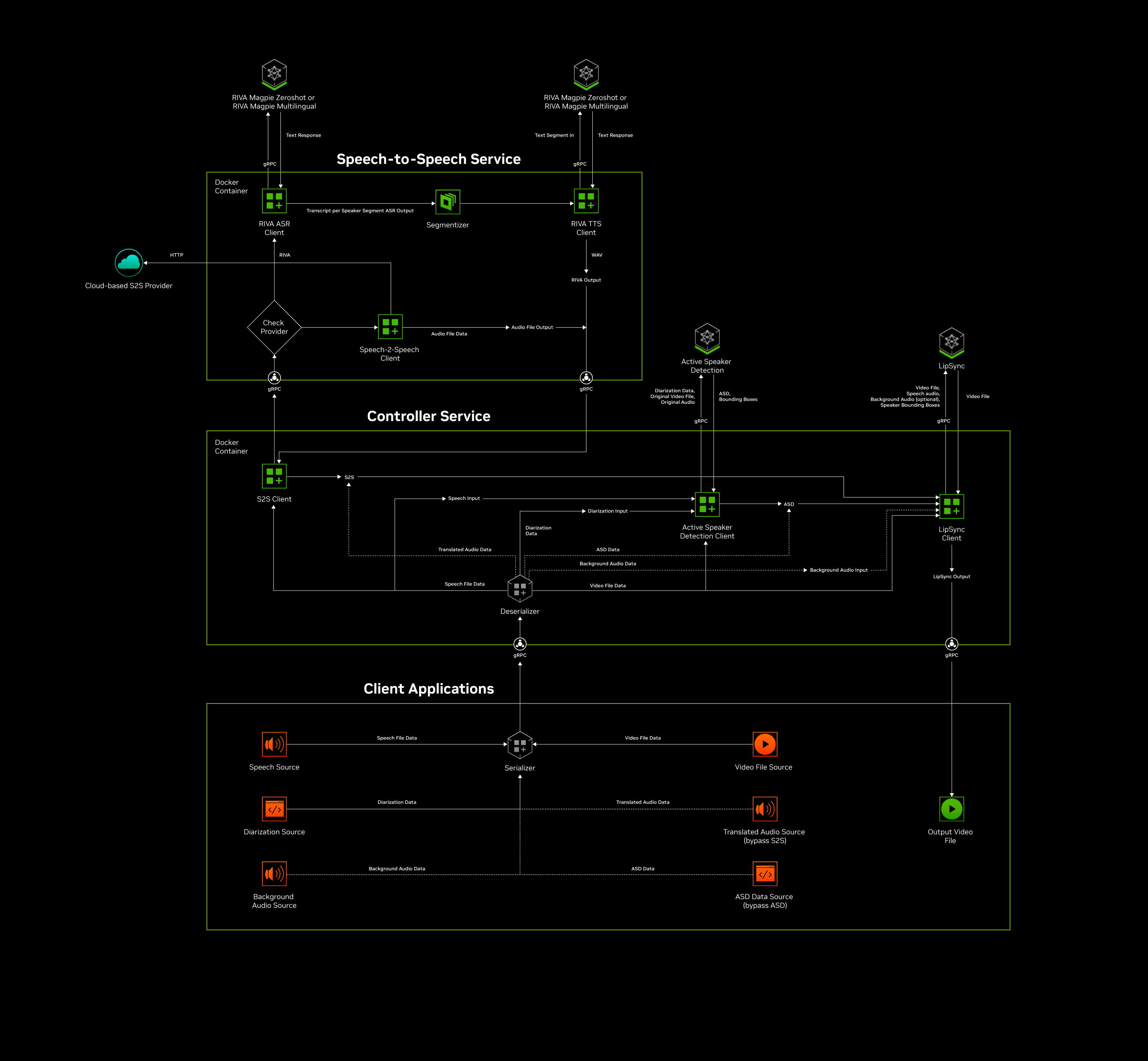 The blueprint is built around composable NVIDIA Inference Microservices (NIMs), custom controller logic, and client services, allowing customers and partners to integrate localization capabilities into existing broadcast or streaming pipelines without re‑architecting production workflows. Theblueprint integrates 3rd party speech-to-speech dubbing providers such as CAMB.AI and ElevenLabs alongside NVIDIA Riva.
